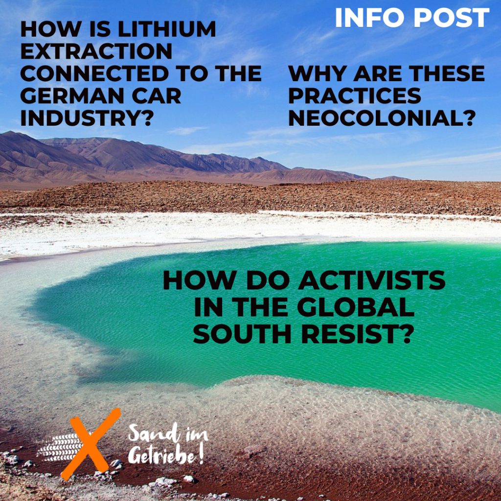 Es ist wichtig, neokoloniale Praktiken und vor allem den Widerstand der davon betroffenen Menschen sichtbar zu machen. Lest mehr über das Thema und teilt die Infos zum Lithiumabbau mit euren Politgruppen, Freund*innen und Familie.